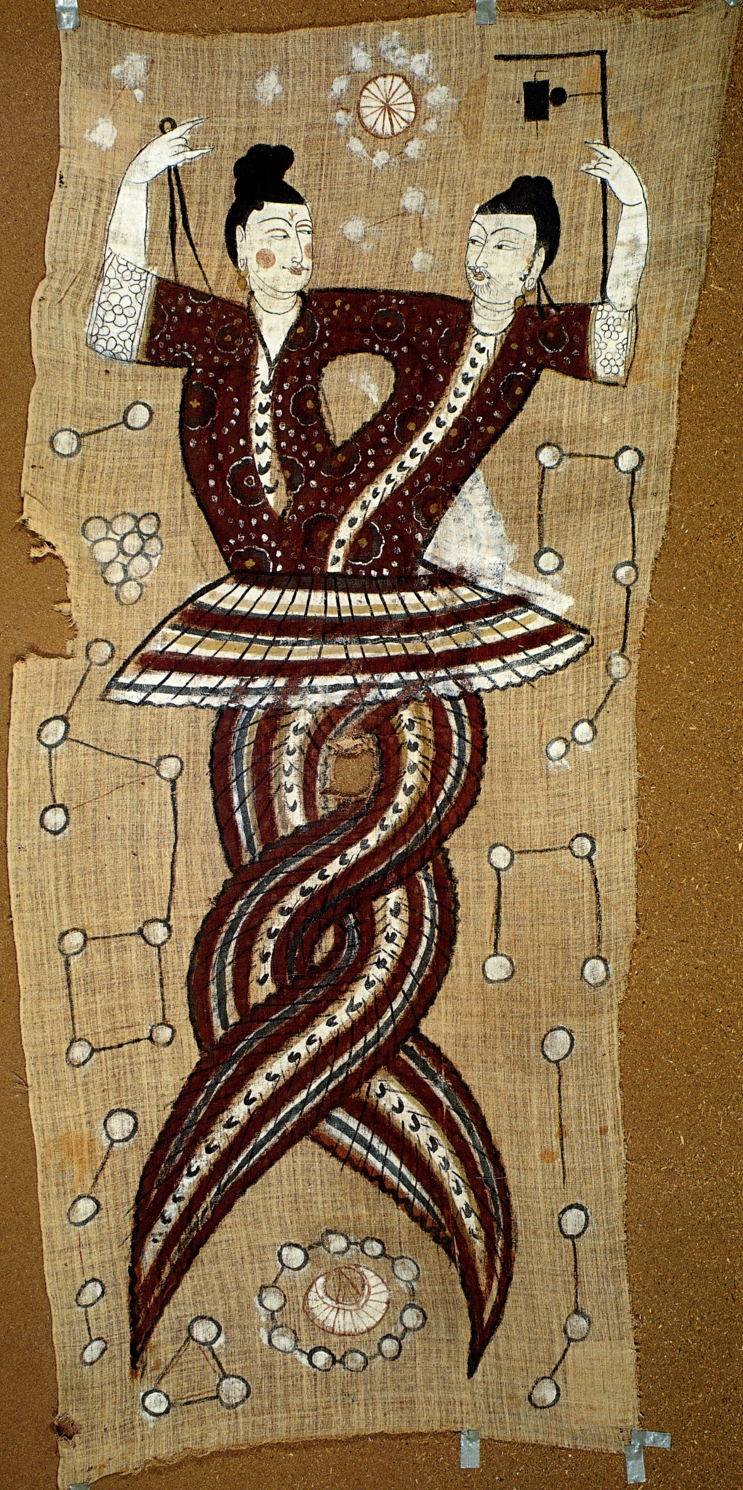 En el huevo universal yacía un ser dormido llamado Pangu. Pangu durmió en este gran huevo por 18,000 años. Cuando despertó, estaba muy oscuro dentro del huevo. Pangu estiró sus brazos y piernas y el huevo se rompió. El liviano y claro qi yang se levantó y formó el cielo azul. Por otro lado, el pesado y grueso qi yin se hundió y formó la expansiva Tierra. Desde entonces, el universo tuvo Cielo y Tierra.